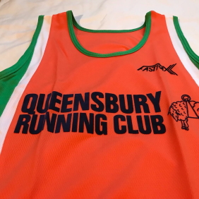 ![]() | 2019-Present Green transitioning to Orange vest with green trim. Queensbury Running Club logo across chest, hanging sheep logo above. No club shorts. |